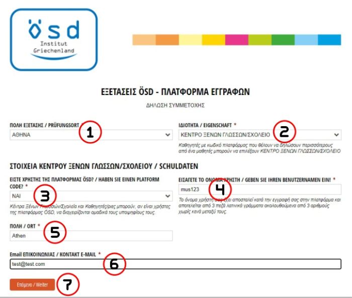 Online εγγραφή με κωδικό ÖSD